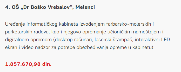 Стигао намештај и рачунарска опрема за информатички кабинет