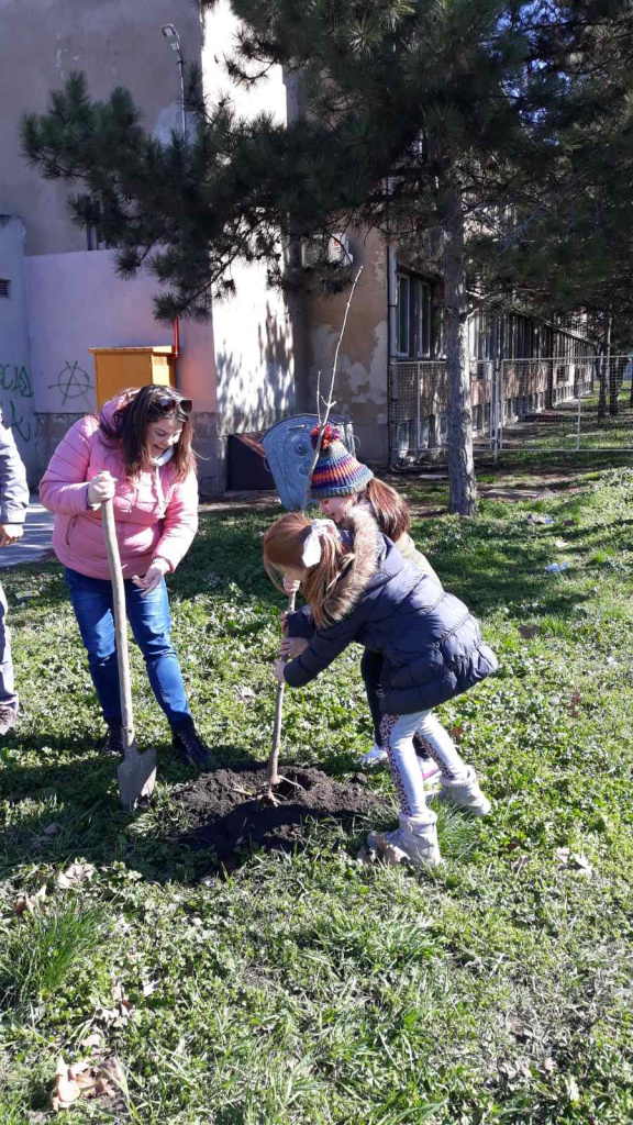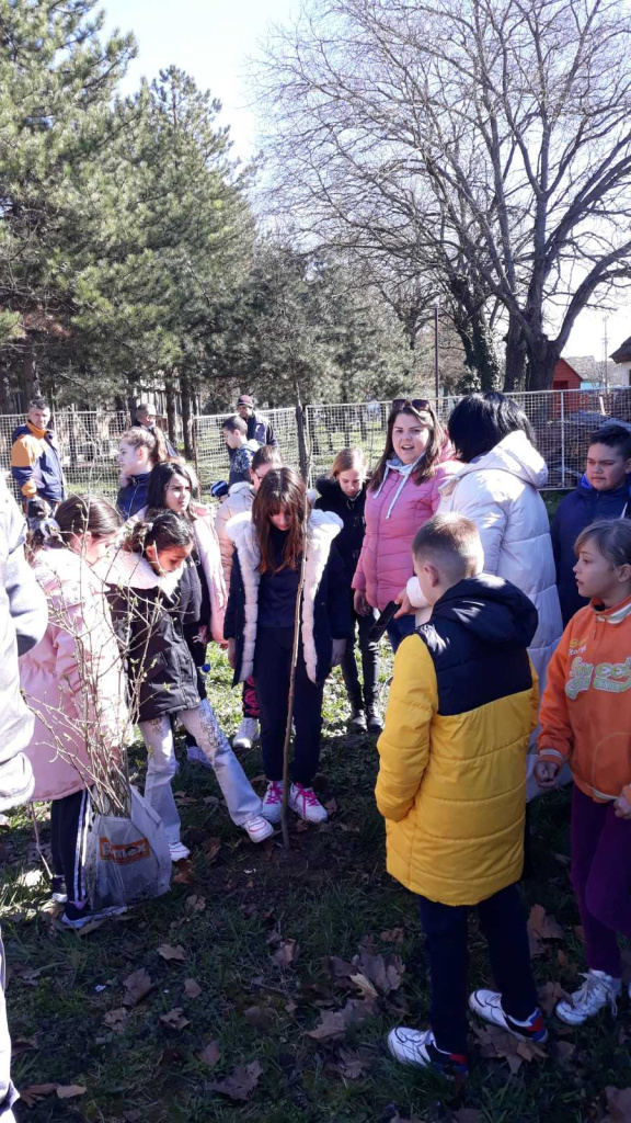 Људи добре воље из резервата "Царска бара" на челу са Јасном Јованов помогли су ученицима 3-1 и 4-3 да посаде дрвеће у школском дворишту.