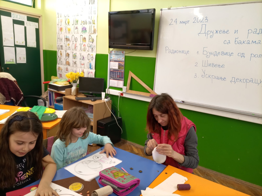 У петак, 24.марта ученици 2-1 су са учитељицом Зорицом Лакатуш угостили баке, али и сестре, стрине, тетке. Сви су уживали у дружењу а и у резултатима креативног рада: бундевице, ускршња декорације а и шивење је било успешно.