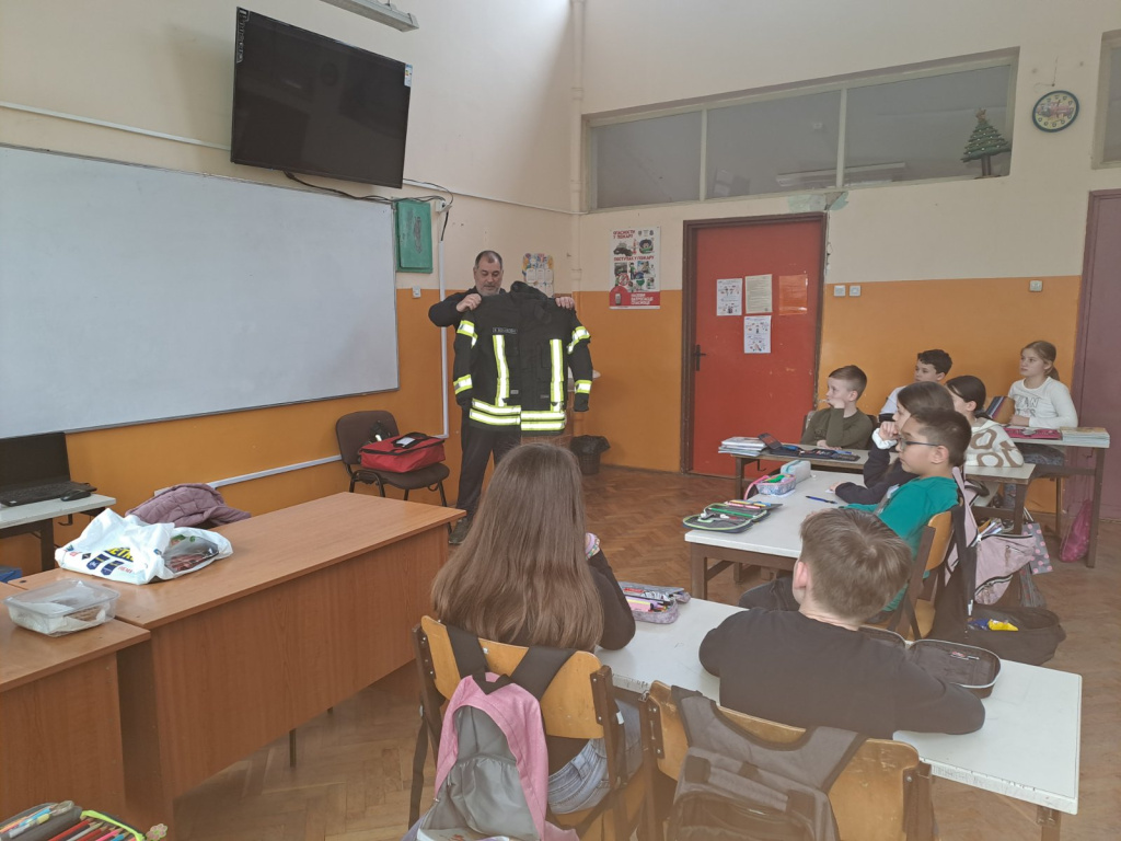 У понедељак, 20.3.2023. ученици 4-1 су угостили ватрогасца, тату нашег друга Данила. Он нам је причао о свом занимању и како би требало да се понашамо кад дође до пожара. Био је стрпљив и дао нам је корисне одговоре на наша питања.