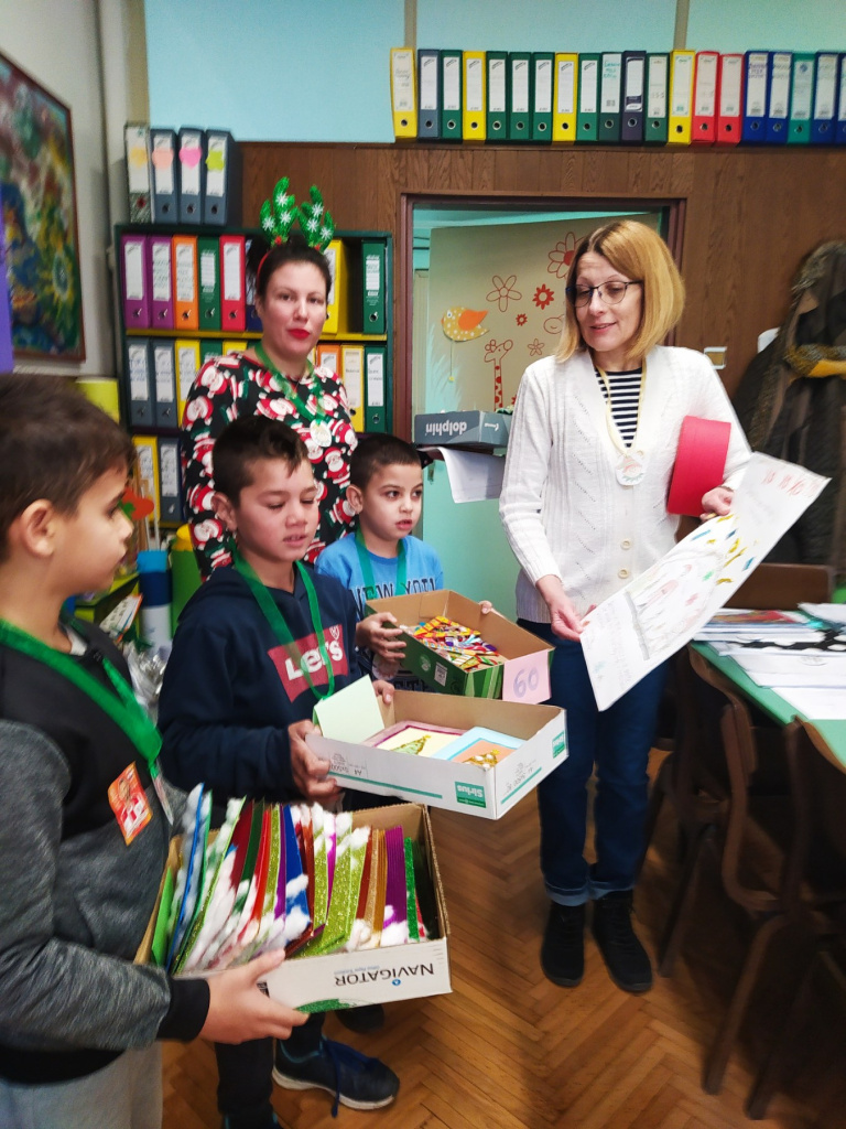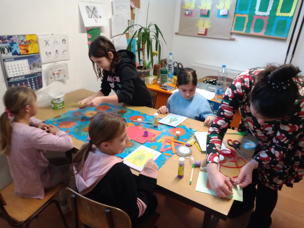 Деда Мразова радионица у додатној подршци у Меленцима је припремила новогодишње украсе и честитке.Помогли су им волонтери - другари из 3.,4.,5. и 6. разреда, да заврше и све то да припреме за продају.Од сакупљеног новца ће купити друштвену игру и материјал за нове креативне подухвате.
