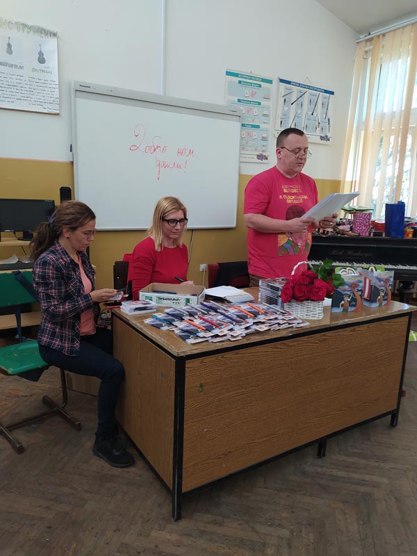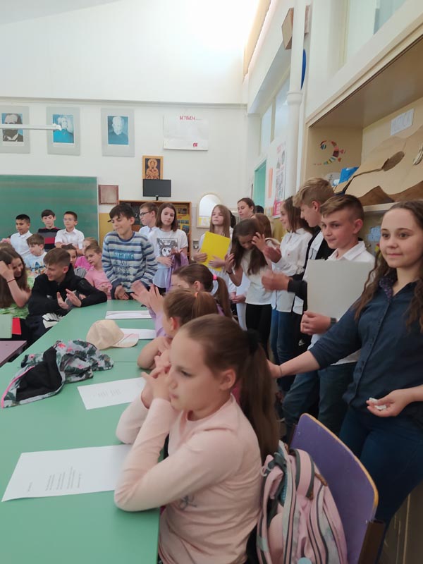Песничку штафету у нашу школу донео је песник Угљеша Шајтинац. Леп  дочек су му приредили наши вредни, распевани хористи са својом наставницом Виолетом Бузаџијом. Библиотекарке Јована Антоновић,  Ангелина Ждрале Маљковић и Јелена Решин су припремиле песме које су им проследиле учитељице и наставнице српског језика и књижевности.