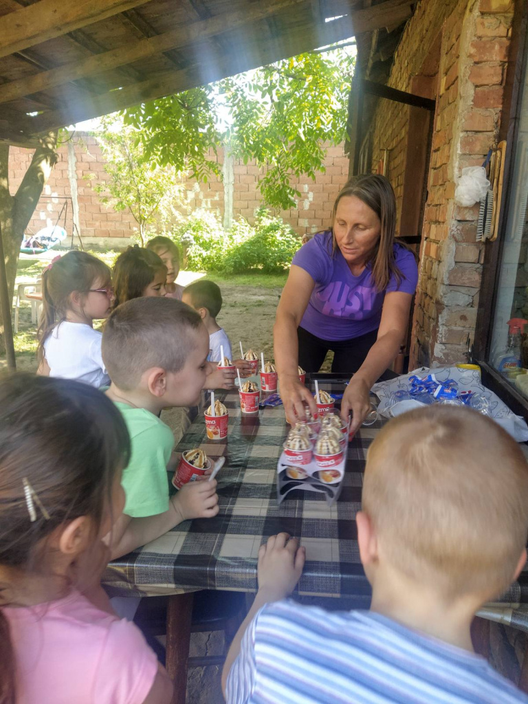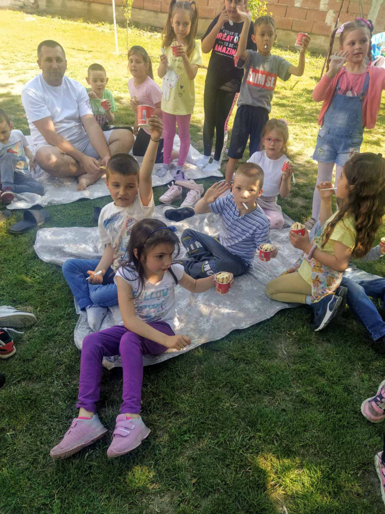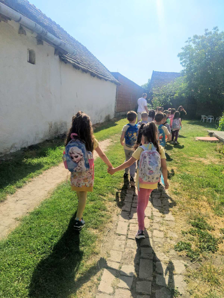 Предшколска припремна група васпитачице Радмиле Војинов је уживала у гостопримству породице Решин. Видели су ластина јаја, гледали како се музе коза, љуљали се, и на крају су били, као што је ред, почашћени.