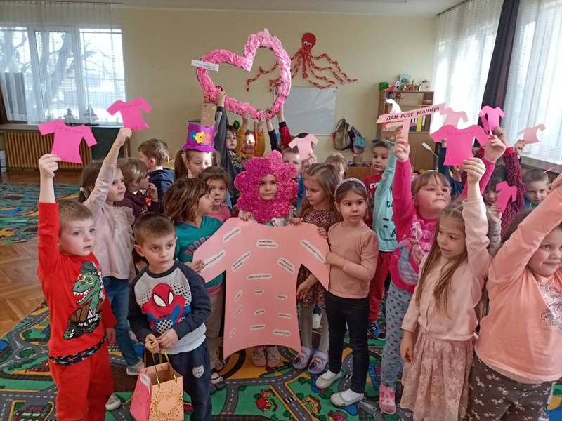 Ове школске године ,Дан розе мајица - Међународни дан борбе против вршњачког насиља смо обележили 23. фебруара различитим активностима: разговорима о свим врстама вршњачког насиља, прављењем плаката, паноа, гледањем филмића о вршњачком насиљу, визуелним представљањем, поделом „ беџеве - розе мајице“. У петак, 25. фебруара нас очекује трибина: Отворено о вршњачком насиљу.