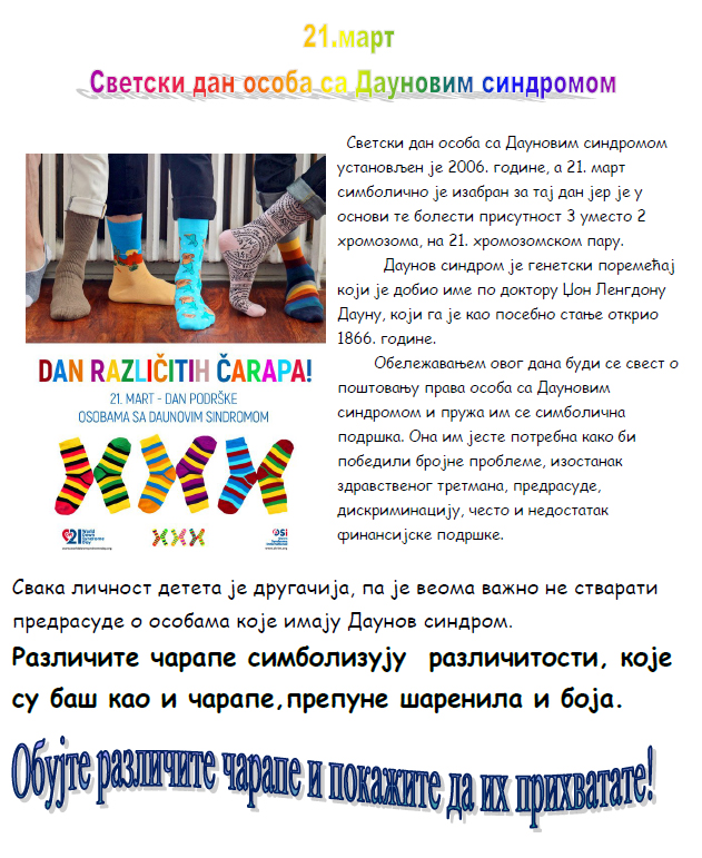 Придружили смо се ОСШ „ 9. мај“ Зрењанин у обележавању Светског дана особа са Дауновим синдромом.