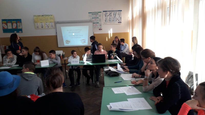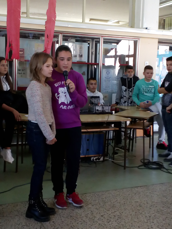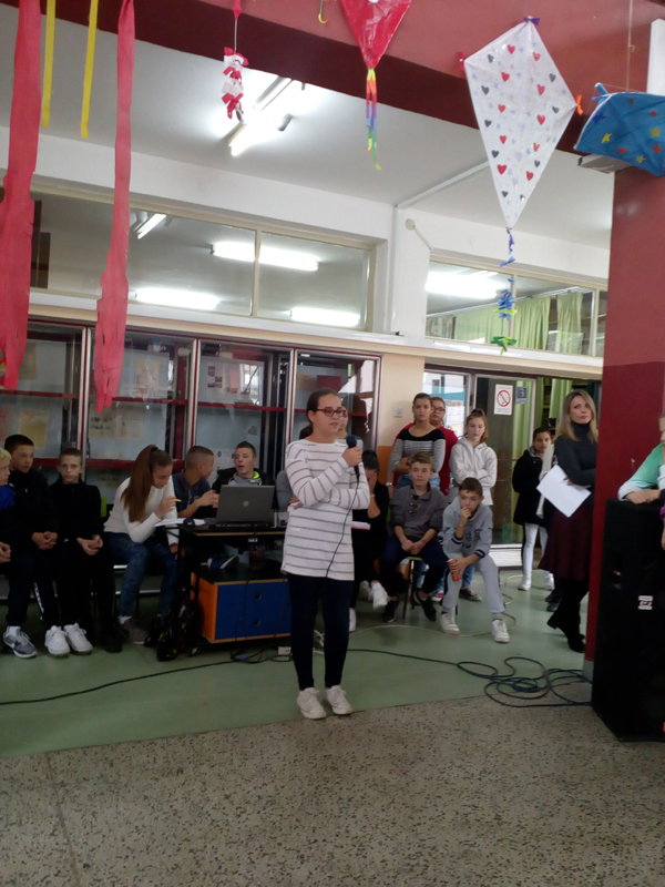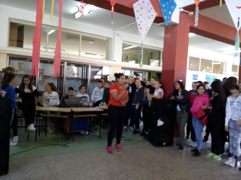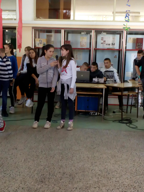 Ученици старијих разреда су данас имали такмичарски дан: играли кошарку, певали караоке, писали стихове користећи задате речи: дечија недеља, деца, дечија права,одрасли, вршњаци.