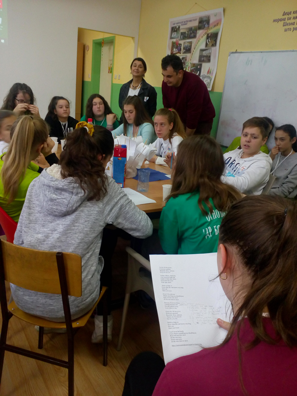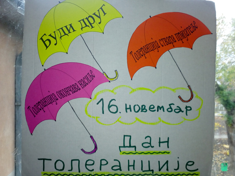 У сусрет Дану толеранције представници Ученичког парламента и још неколико вредних ученика наше школе су били гости ОШ  „Светозар Марковић Тоза“  из Елемира и Тараша. На радионици у посвећеној толеранцији, заједнички, тимски су се учили значају превазилажења разлика, преводили, писали приче, песме, цртали,  потом су се и надметали у кошарци. После пар сати дружења су били  задовољни, богатији за још неколио нових другара.