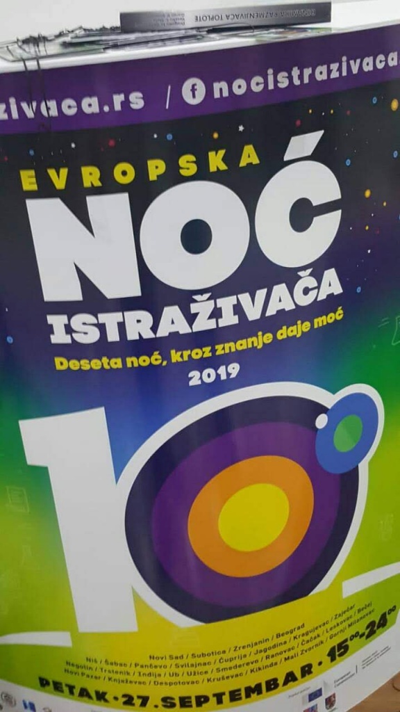 И ове године показали смо своју креативност, иновативност и успешност. Дали смо своју подршку јубиларној десетој по реду Европској ноћи истраживача, највећој научној манифестацији едукативно-забавног карактера, у којој је синоћ учествовало 370 градова широм Европе, где су и наравно 29 градова широм наше Србије.