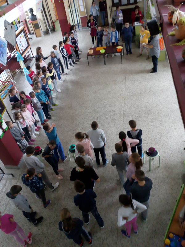 Ученици 4.разреда су правили креације од јесењих плодова, имали игре без граница где је акценат био на здравој храни и  спретности. Док су се такмичили имали су подршку млађих другара.