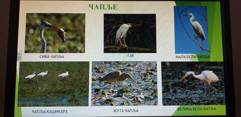 • интересантне податке о биљним и животињским врстама воденог станишта: ТИСКОМЦВЕТУ, ВИЛИНОМКОЊИЦУ, МРАВУ, БАРСКОЈ КОРЊАЧИ, РИБАРИЦИ, ЦРНОЈ РОДИ, СИВОЈ ЧАПЉИ, ЧАПЉИ КАШИКАРИ, ПАТКИ ГЛУВАРИ и многим другим представницима овог заштићеног краја.