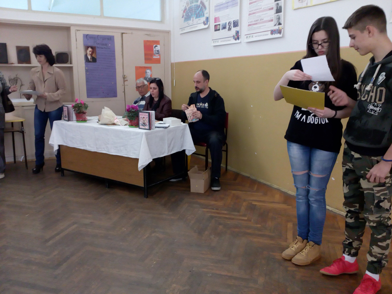 Данас, у понедељак, 25.марта у нашу школу је стигла Песничка штафета коју нам је донео песник Владимир Андрић. Такмичило се 37 младих песника наше школе а Маша Дујин, II2 и Катарина Теодоровић, V2 ће нас представљати на завршној свечаности 11.априла у Културном центру Зрењанина.