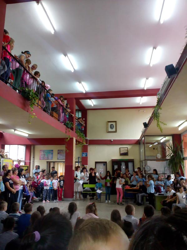 Баш је било распевано и весело! Ученици другог, трећег и четвртог разреда су припремили програм добродошлице у дечији савез својим најмлађим другарима – ученицима првог разреда. Хор је спремио  још једну лепу песму о решавању проблема, учесници караока су хол испунили песмом и добрим расположењем, а фудбалери су се надметали на спортском терену, а увече је била журка.