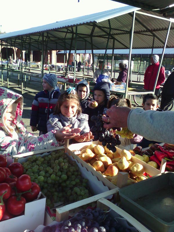 Прваци су посетили пијацу, нешто добили, нешто купили (по сниженој цени), а онда се у учионици почастили.
