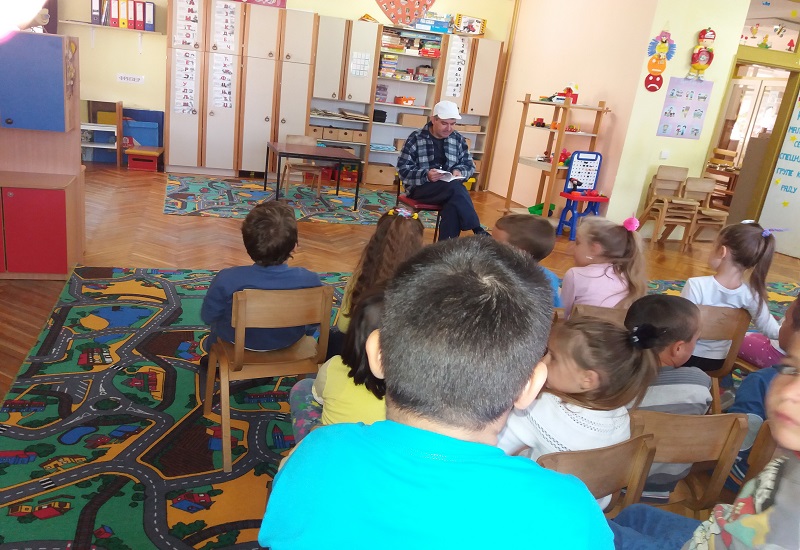 Деца су се упознала и са занимањем песник. Саша Миливојев је деци представио рецитације из своје нове књиге. Деца су га пажљиво слушала и веома радо одговарала на питања и постављала их.