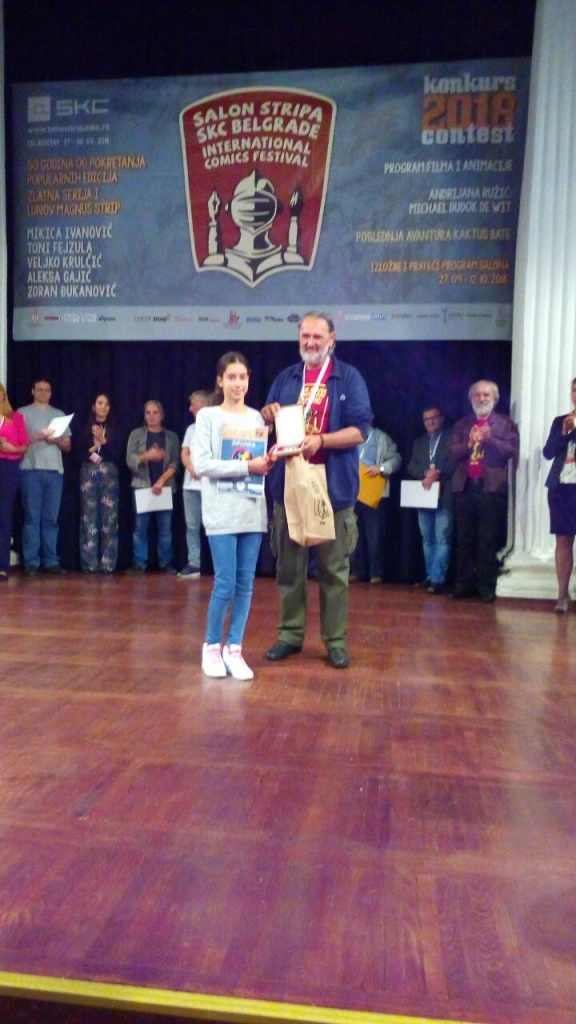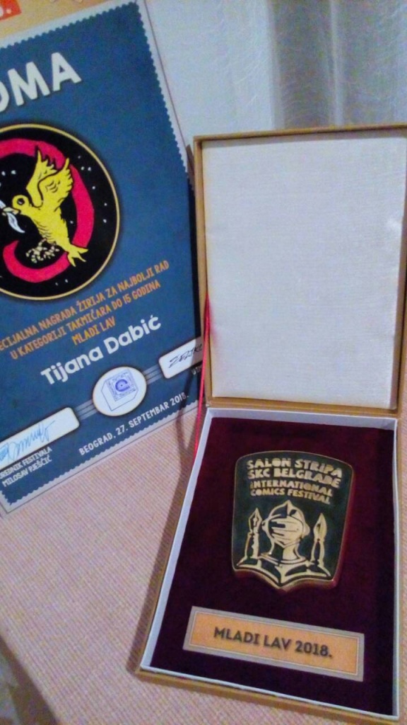 Тијана Дабић, ученица VII1 је добила специјалну награду жирија за најбољи рад у категорији такмичара до 15 година – Млади лав на Међународном фестивалу стрипа. Честитамо!