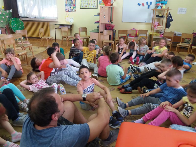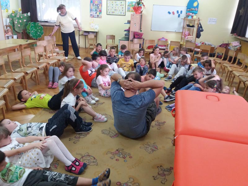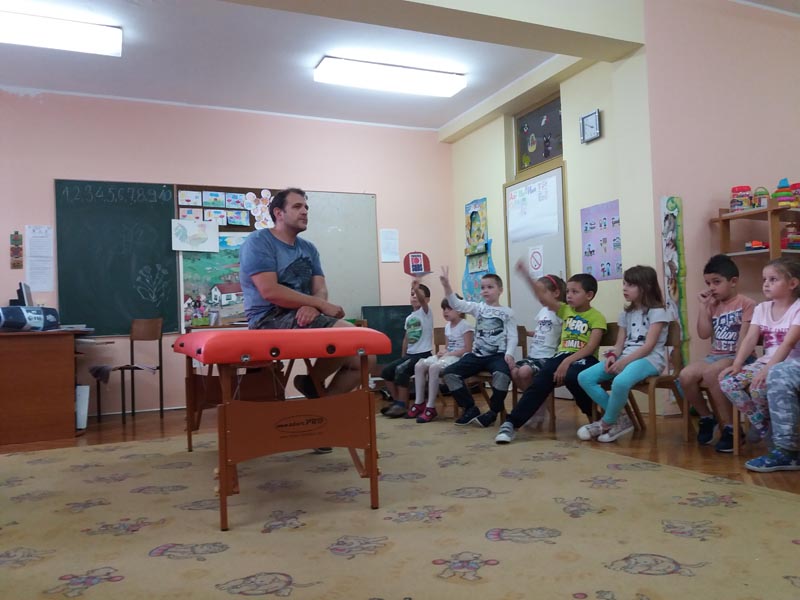 18.05.2018. У вртићу је одржана угледна активност. У посети нам је био физиотерапеут Срђан Анучин. Он је деци причао о свом занимању, о томе на који начин он помаже људима. Разговарали су о повредама, вежбама након повреда, вежбама за уклањање деформитета... Демонстрирао је деци одређене вежбе које су деца без проблема радила заједно са њим. VrticFizTarapeut 20180518_153720.jpg 20180518_154551.jpg 20180518_154756.jpg 20180518_154906.jpg 20180518_160338.jpg 20180518_160431.jpg 20180518_160507.jpg