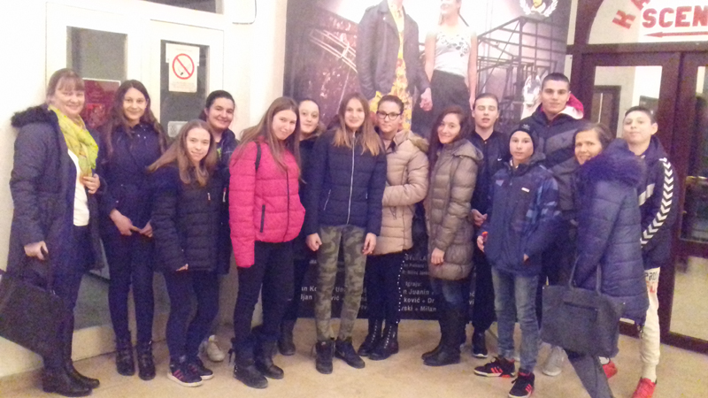 Дванаестро ученика осмог разреда је у петак уживало у позоришној представи „Ромео и Јулија“ у зрењанинском Народном позоришту „Тоша Јовановић“. Посету су организовале наставница Наташа Ковачевић Гордић и наставница Снежана Цвејић. Гледање представе се надовезало на обраду овог књижевног дела у настави. Многе стихове смо знали напамет и те сцене су нам биле најбоље. Дивили смо се глумцима и њиховој привилегији да се искључе из приватног, из околине, и да буду неко други без устезања.
