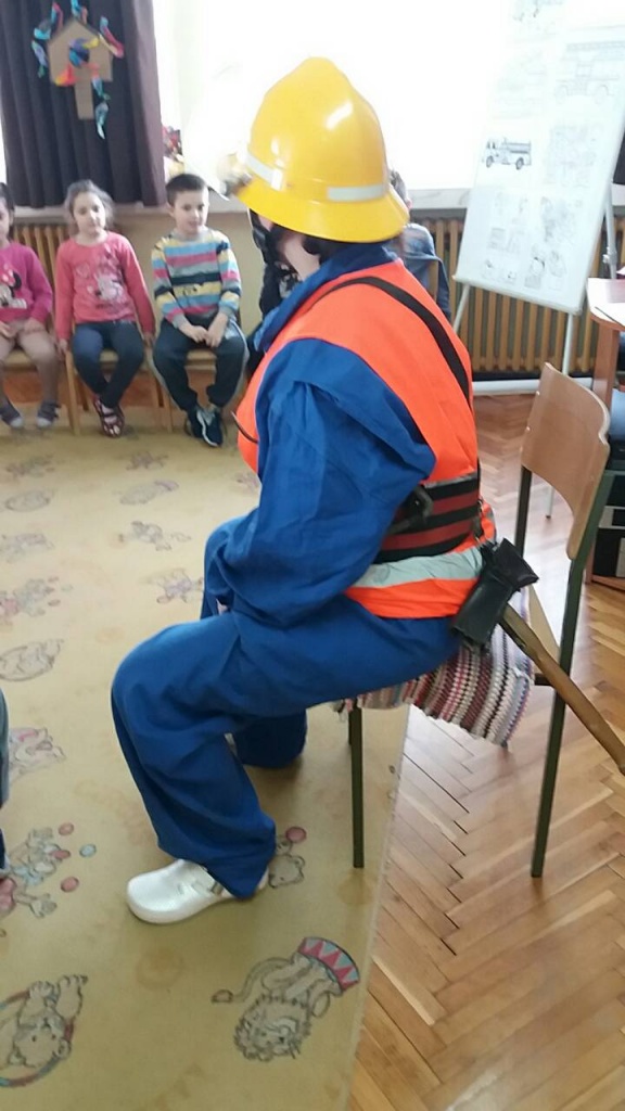 Предшколци су се упознали са занимањем - ватрогасац: шта ради, који су његови алати за рад, да ли воли свој посао, и још пуно питања је било постављено на овом огледном  занимању које је припремила васпитачица Радмила Војинов.