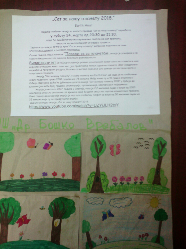 И ове године смо обележили  “Сат за нашу планету 2018.“ тако што су ученици правили флајере којима су информисали своје родитеље о овој светској акцији.