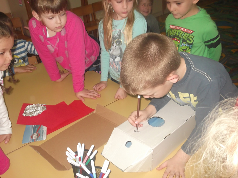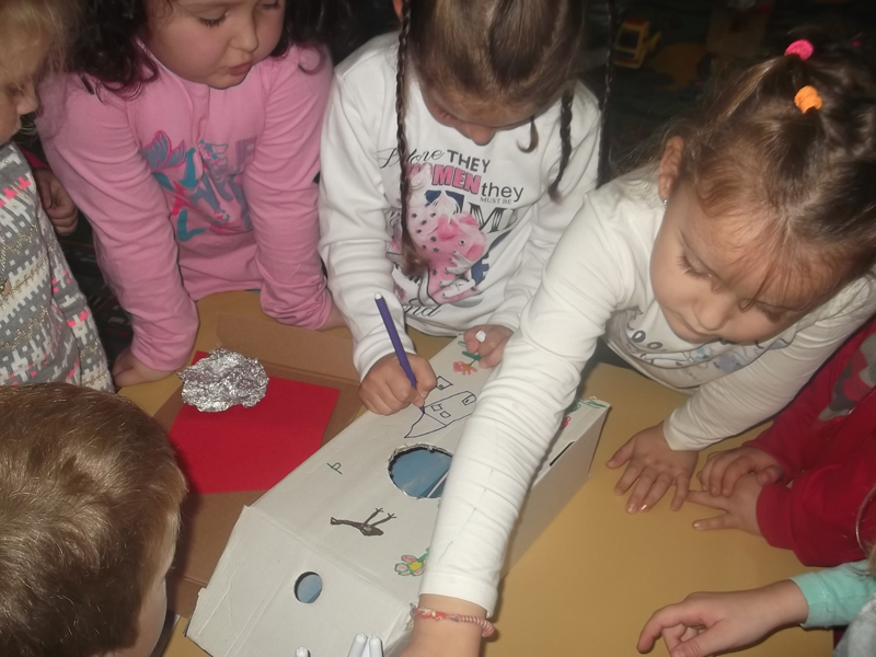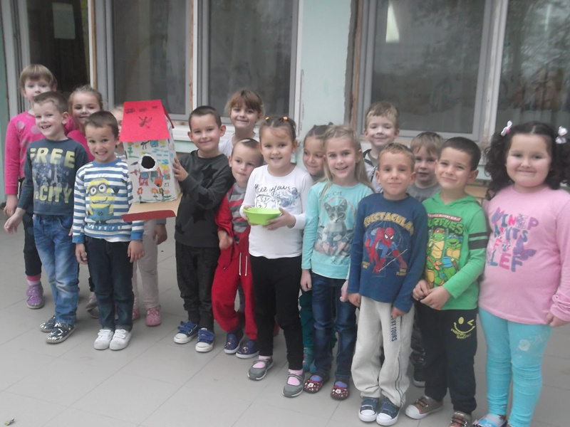 Васпитачица Оља и деца из њене групе су  направили кућицу за птице од картона, осликали је, а онда и оставили храну за птичице.