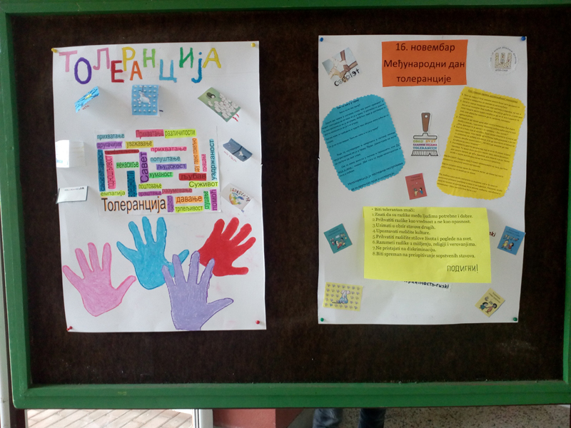 Обележили смо Међународни дан толеранције – 16. новембар! Било је: музике, плеса, драматизације, паноа. Током следеће недеље ће се у оквиру одељењских заједница одвијати још неке активности, а све то у циљу учења да је различитост богатство, а не разлог конфликата.