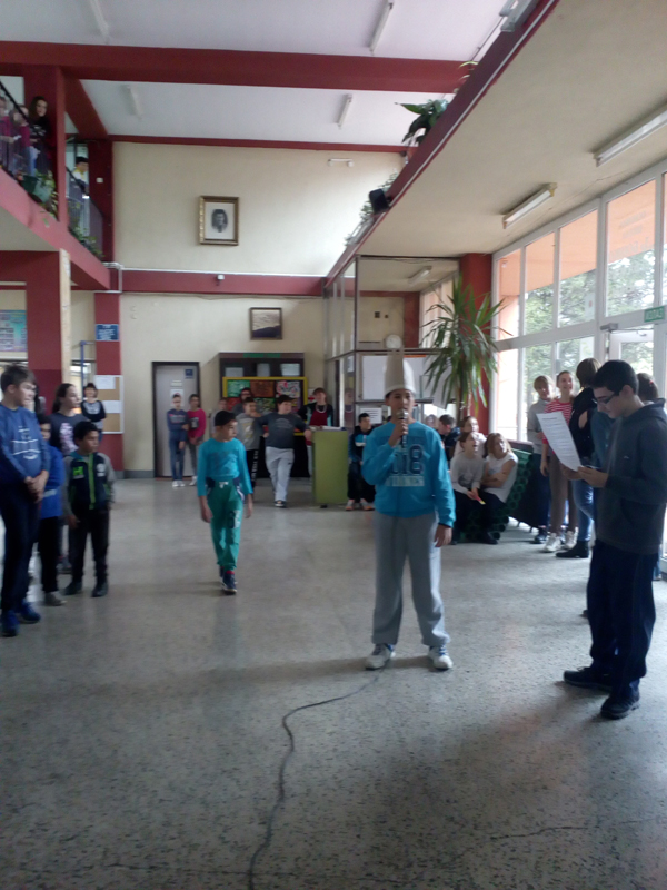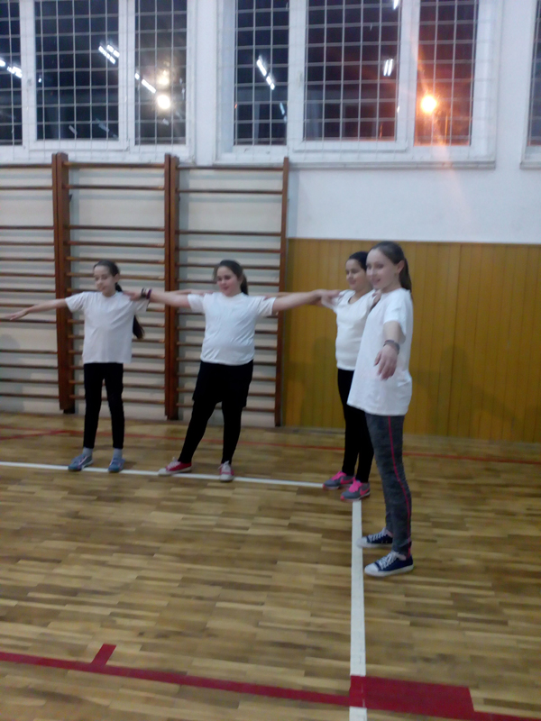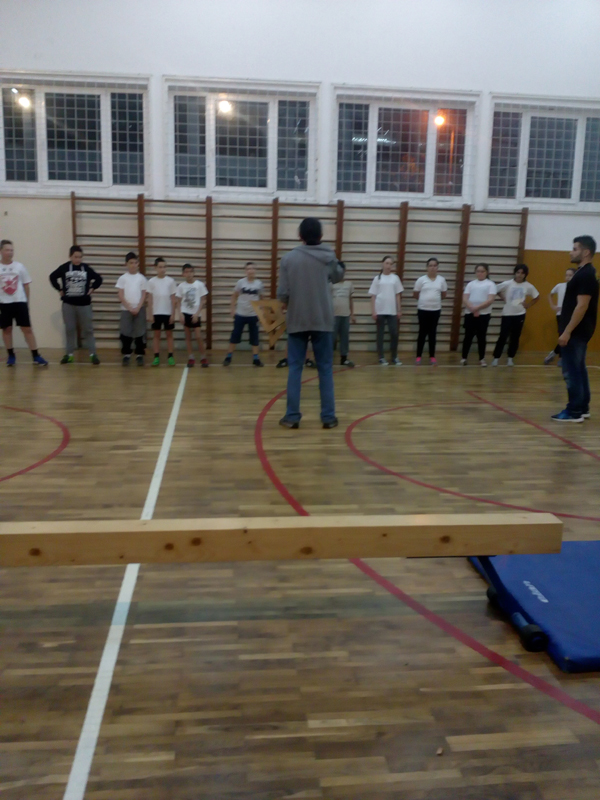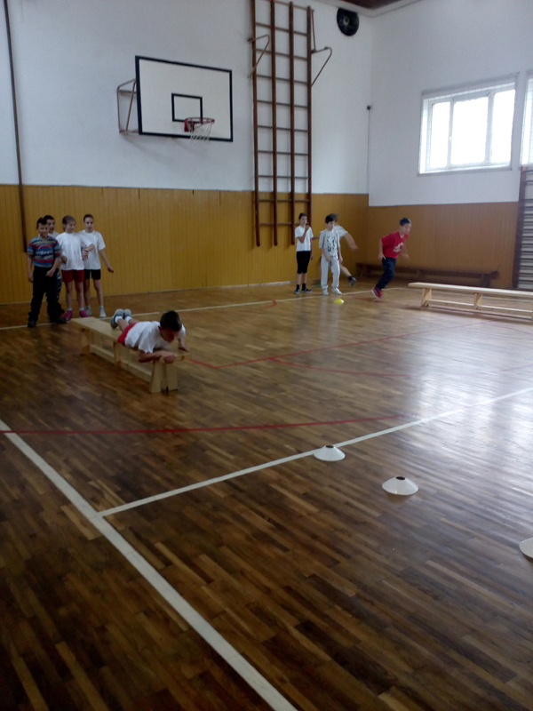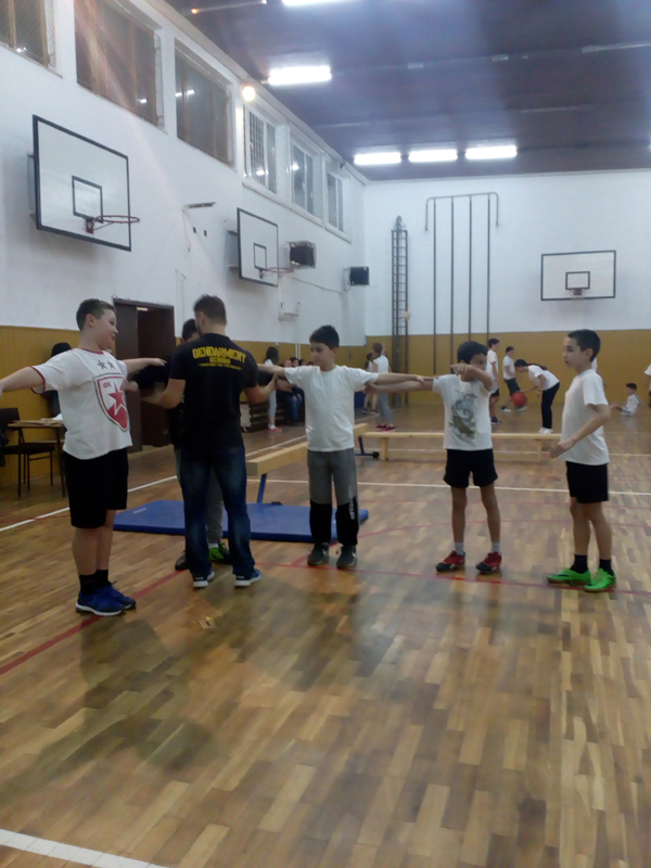 На  огледном часу  из математике ученици  V1 су у сали за физичко васпитање утврдили знање о угловима. Кроз вежбе обликовања, групне вежбе и вежбе спретности  водили су их: наставник математике Слободан Маринковић и наставник физичог васпитања Бојан Цвејић.