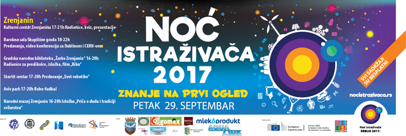 Синоћ, 29.9.2017. одржана је наша и ваша омиљена манифестација „Ноћ истраживача“. У Зрењанину, као и у многим другим градовима Србије и Европе, млади научници показали су своје оригиналне идеје. Културни центар био је пун креативних штандова. Манифестацију организује Висока техничка школа струковних студија у Зрењанину, а манифестацију је подржао и Народни музеј Зрењанина, где се чекао ред за испробавање „виртуелног археолога“. Приказане су бактерије  које расту у различитим бојама, роботи, експерименти са ватром, топлотом и водом. Наши ученици су широм отворених очију прилазили мамуту „Кика“ којег су (малог) донели из Кикиндског музеја. Видели смо изложбу о дуду и свиленој буби, а пробали смо пудинг и кокице које су из Хемијске школе спремили испробавајући контакт скроба са водом и топлотом.Наши другари су учествовали на два штанда са наставницом Наталијом Макивић и са учитељицом Весном Протић. Такође, опробали смо се и у еколошком квизу на бини уз навијање наших другова. Новинарска секција похваљује све учеснике! Захваљујемо се свим наставницима који су учествовали у организацији, који су бринули о ученицима и поделили са децом  радост због свега виђеног.       Новинарска секција