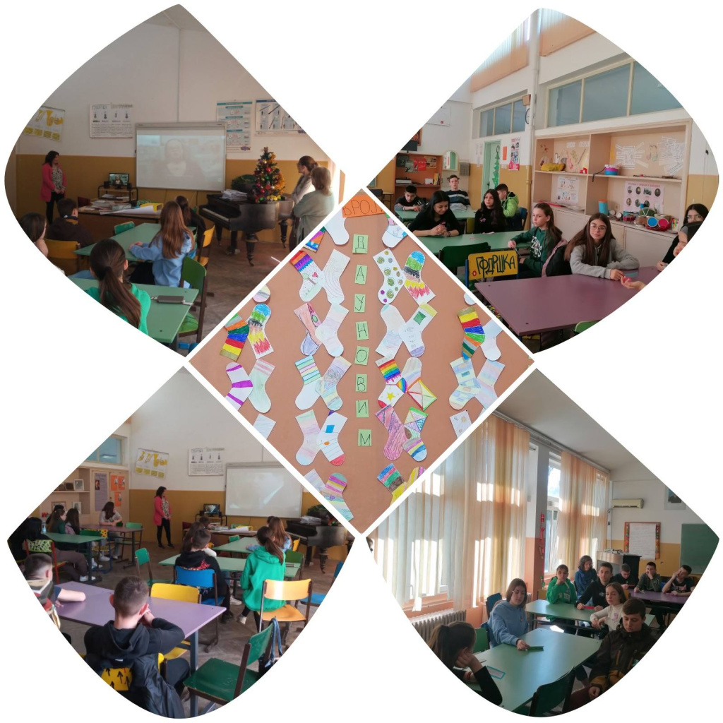 Разноликост активности је обележила данашњи дан: радионице за ученике 4. разреда и Ученички парламент коју се одржање Љиља Драгосавац Арсенов, дефектолог и Јелена Краљ, логопед плакати, филмићи, беџеви- чарапице, шетња до центра...
