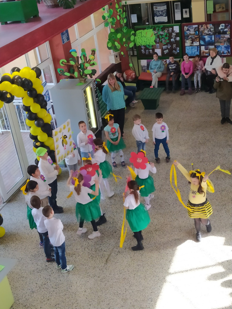 Све се завршило веома слатко јер се актиж жена „Ђурђевак“ за то правовремено потрудио и за све ученике обезбедиле укусне крофне које су малишани појели уз сласт јер су биле заслађене природним медом. Овом приликом захваљујемо активу „Ђурђевак“, а пчеларима ХВАЛА, јер су и обе године нашу најмлађу генерацију ученика научили много о пчелама и меду. Хвала и свим ученицима млађих разреда, као и њиховим учитељима који су најмлађе подржали великим аплаузом.