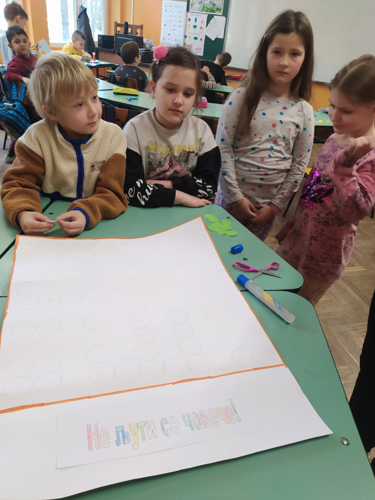 Радионица са педагогом у 1-3 : Сарадња у тиму, је за крајњи резултат имала да направе игру Не љути се човече а потом да одиграју једну партију.
