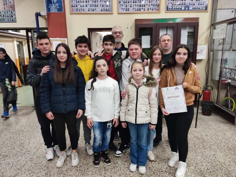 Ученици из подршке у Меленцима дају свој допринос на школској приредби, делећи цветове мамама, дамама, другарицама и наставницама.